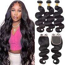 Amazon Com Body Wave Bundles With Closure For Black Women 24 26 28 22 100 Unprocessed Brazilian Body Wave Human Hair 3 Bundles With 4x4 Lace Closure Free Part Natural Color Beauty Personal Care